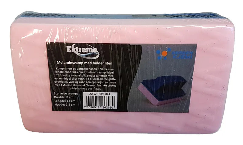 Komprimert og varmebehandlet. Varer mye lengre enn tradisjonell melaminsvamp. Til bruk på harde glatte overflater. Vask og rubb i én operasjon sammen med Extreme Universal Cleaner. Bør ikke brukes på følsomme overflater.